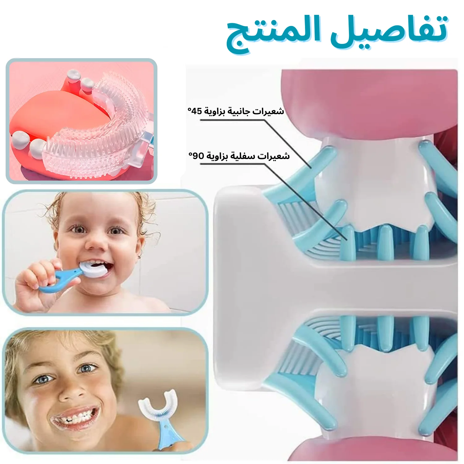 الآن الحل بين يديك ، فرشاة أسنان الأطفال بتصميم U صُممت خصيصًا لتجعل تنظيف الأسنان أسهل، أسرع، وأمتع لطفلك — بدون ألم، بدون خوف، وبدون صراخ.